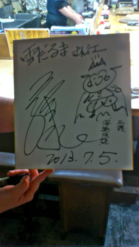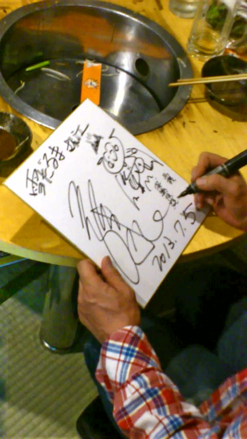 ●ライブの打ち上げにて。お店の方にサインをお願いされる王様。